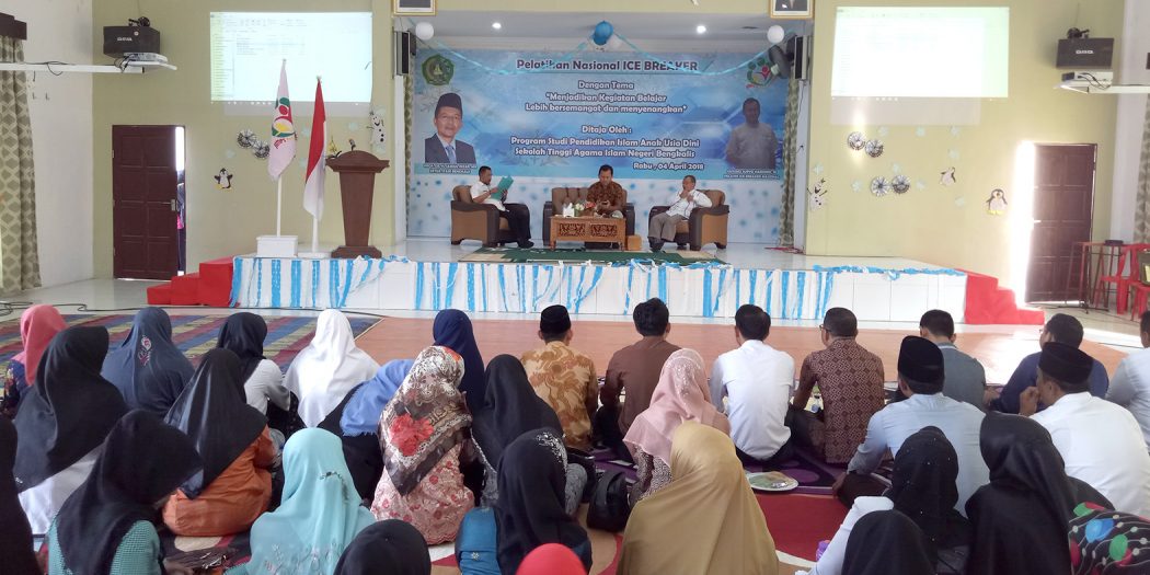 Bengkalis – Program Studi Pendidikan Anak Usia Dini (PIAUD) STAIN Bengkalis menggelar Pelatihan Nasional Ice Breaker dengan menghadirkan Pelatih Ice Breaker Nasional Kusumo Suryoharjono dari Surabaya dengan mengambil tema “ Menajadikan Kegiatan Belajar Lebih Bersemangat dan Menyenangkan”, kegiatan berlangsung di Aula AL-Farabi STAIN Bengkalis, Rabu, 4/04/2018