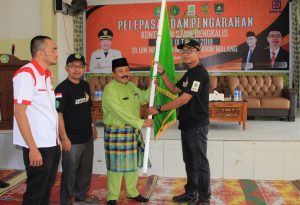 Acara pelepasan ditandai dengan penyerahan bendera kontingen STAIN Bengkalis oleh H. Heri Indra Putra, SE, ME kepada ketua kontingen Wira Sugiarto, S.IP, M.Pd.I, dilanjutkan dengan foto dan pembuatan vidio bersama.