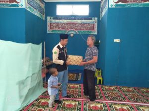 Kegiatan Aksi Peduli Masjid diakhiri dengan pemberian kenang-kenangan dari mahasiswa SSQ STAIN Bengkalis kepada pengurus Musholla Pantai Indah Selatbaru.