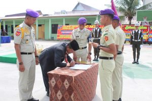 Inspektur upacara, Drs. Haholongan atas nama pribadi dan pemerintahan kabupaten Bengkalis dalam amanatnya mengucapkan selamat dan tahniah kepada komandan satuan terpilih, dan mengucapkan terimakasih atas kerjasama yang dilakukan oleh komandan sebelumnya.