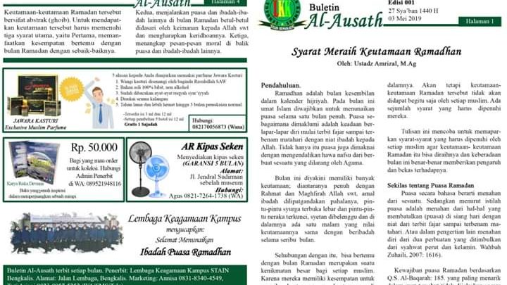 Kampus Melayu (humas) Bengkalis – Begerak dibidang keagamaan, Lembaga Keagamaan Kampus (LKK) Sekolah Tinggi Agama Islam Negeri (STAIN) Bengkalis terbitkan…