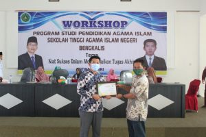 Kampus Melayu (humas) Bengkalis – Sebagai upaya memberikan pemahaman serta motivasi bagi mahasiswa, Program Studi Pendidikan Agama Islam (PAI) Sekolah Tinggi Agama Islam Negeri (STAIN) Bengkalis menggelar Workshop berjudul “Kiat Sukses dalam Menyelesaikan Tugas Akhir”, Rabu (25/11/2020).