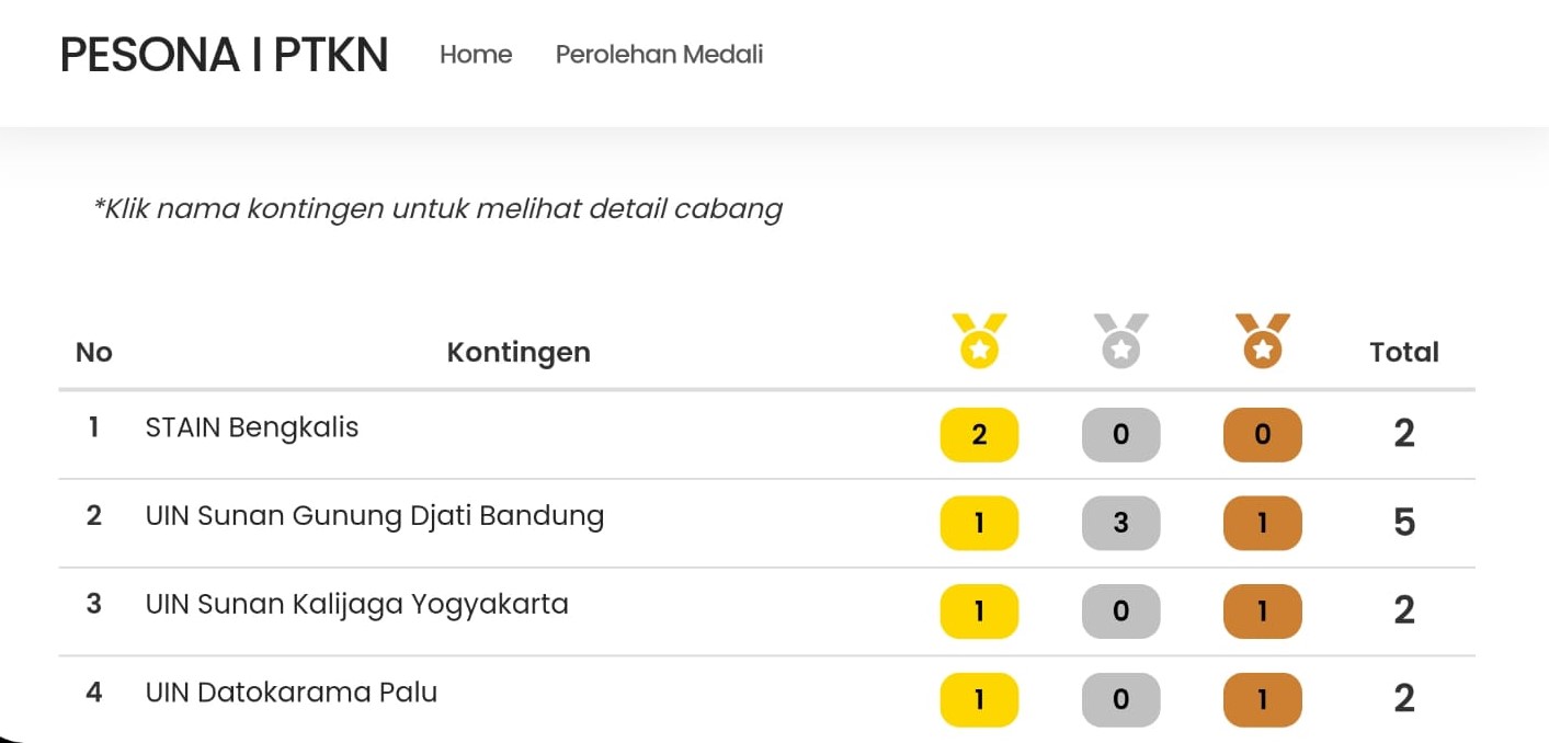 Prestasi ini membawa kontingen STAIN Bengkalis sementara di hari ke-2 menduduki peringkat pertama disusul oleh UIN Sunan Gunung Djati Bandung dan UIN Sunan Kalijaga Yogyakarta.