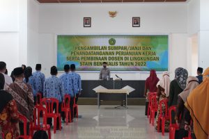 Selanjutnya Ketua STAIN Bengkalis juga mengajak kepada seluruh civitas akademika untuk terus meningkatkan kualitas kinerja seiring dengan penandatanganan perjanjian kerja Tahun 2022 dan berharap seluruh civitas akademika dapat saling bekerja sama serta menunjukkan kontribusi terbaik dalam pengembangan institusi.