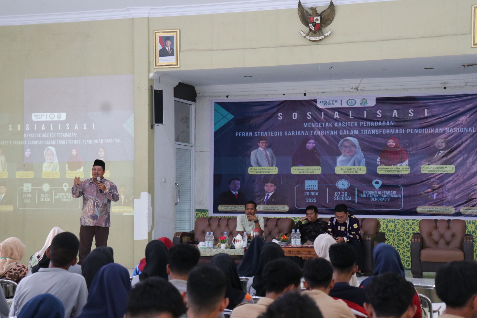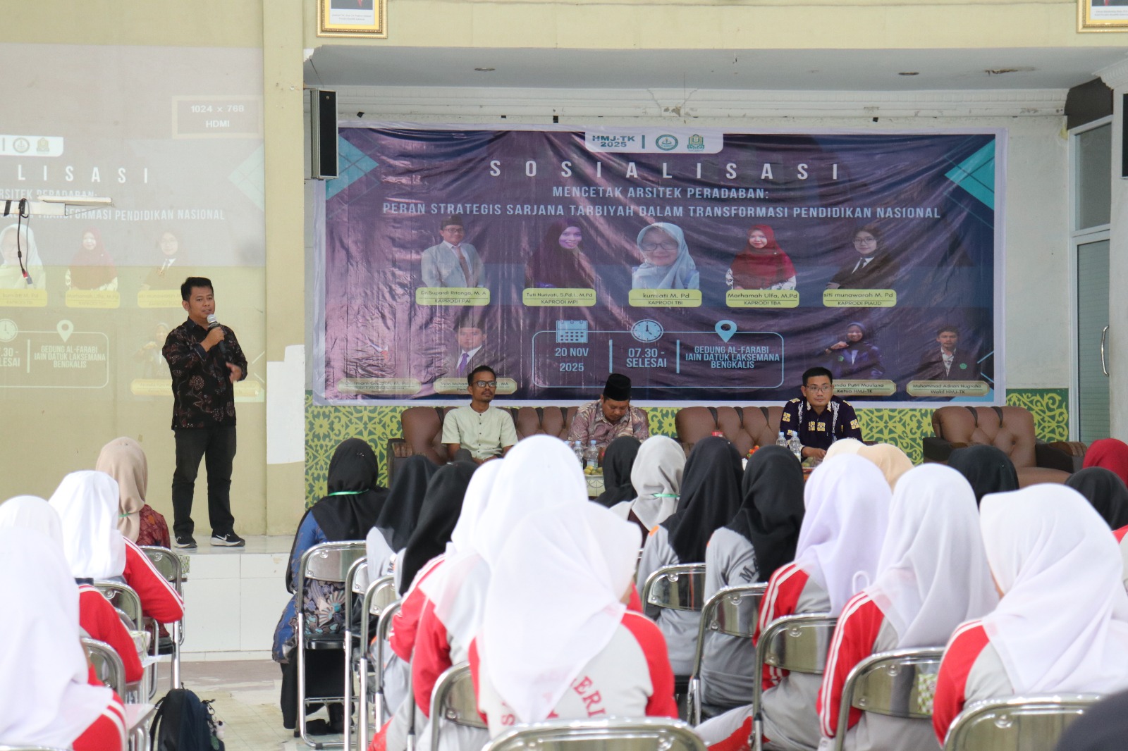 IAIN Datuk Laksemana Bengkalis (humas) Bengkalis – Himpunan Mahasiswa Jurusan (HMJ) Tarbiyah dan Keguruan IAIN Datuk Laksemana Bengkalis sukses menyelenggarakan kegiatan Sosialisasi Program Studi dengan tema “Mencetak Arsitek Peradaban: Peran Strategis Sarjana Tarbiyah dalam Transformasi Pendidikan Nasional”. Acara ini berlangsung Kamis (20/11/2025) di Aula Alfarabi dan diikuti oleh puluhan siswa dan siswi SLTA se-Kecamatan Bengkalis.