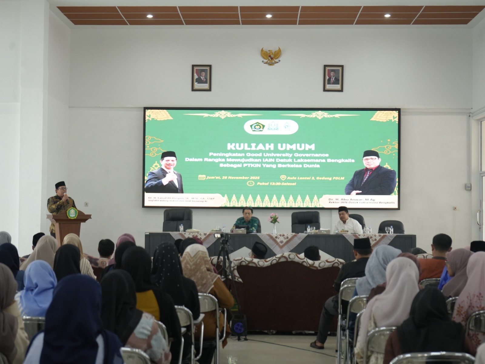 IAIN Datuk Laksemana Bengkalis (humas) Bengkalis — Institut Agama Islam Negeri (IAIN) Datuk Laksemana Bengkalis menggelar kuliah umum dengan tema “Peningkatan Good University Governance dalam Rangka Mewujudkan IAIN Datuk Laksemana Bengkalis sebagai PTKIN yang Berkelas Dunia”, pada Jum’at (28/11/2025).