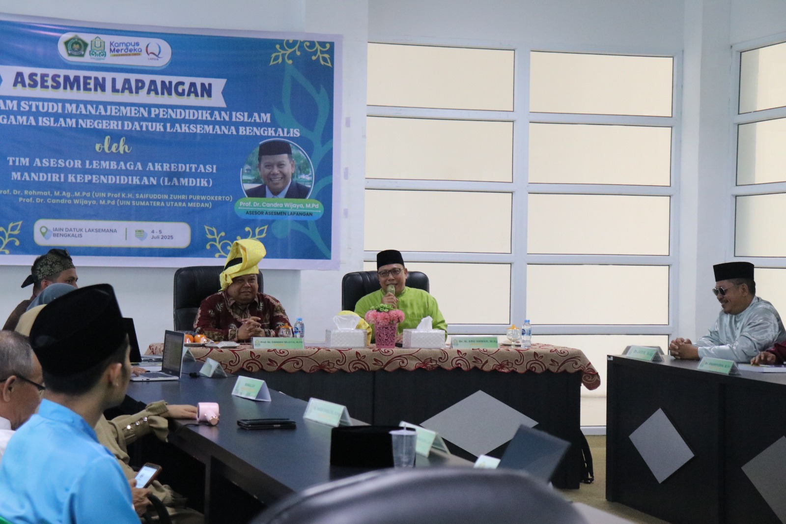 IAIN Datuk Laksemana Bengkalis (Humas) Bengkalis – Program Studi Manajemen Pendidikan Islam IAIN Datuk Laksemana Bengkalis menjalani proses asesmen lapangan oleh Lembaga Akreditasi Mandiri Kependidikan (LAMDIK). Kegiatan ini berlangsung di Ruang Rapat Lantai II Gedung Layanan dan Pembelajaran IAIN Datuk Laksemana Bengkalis, Jum’at (04/07/2025).