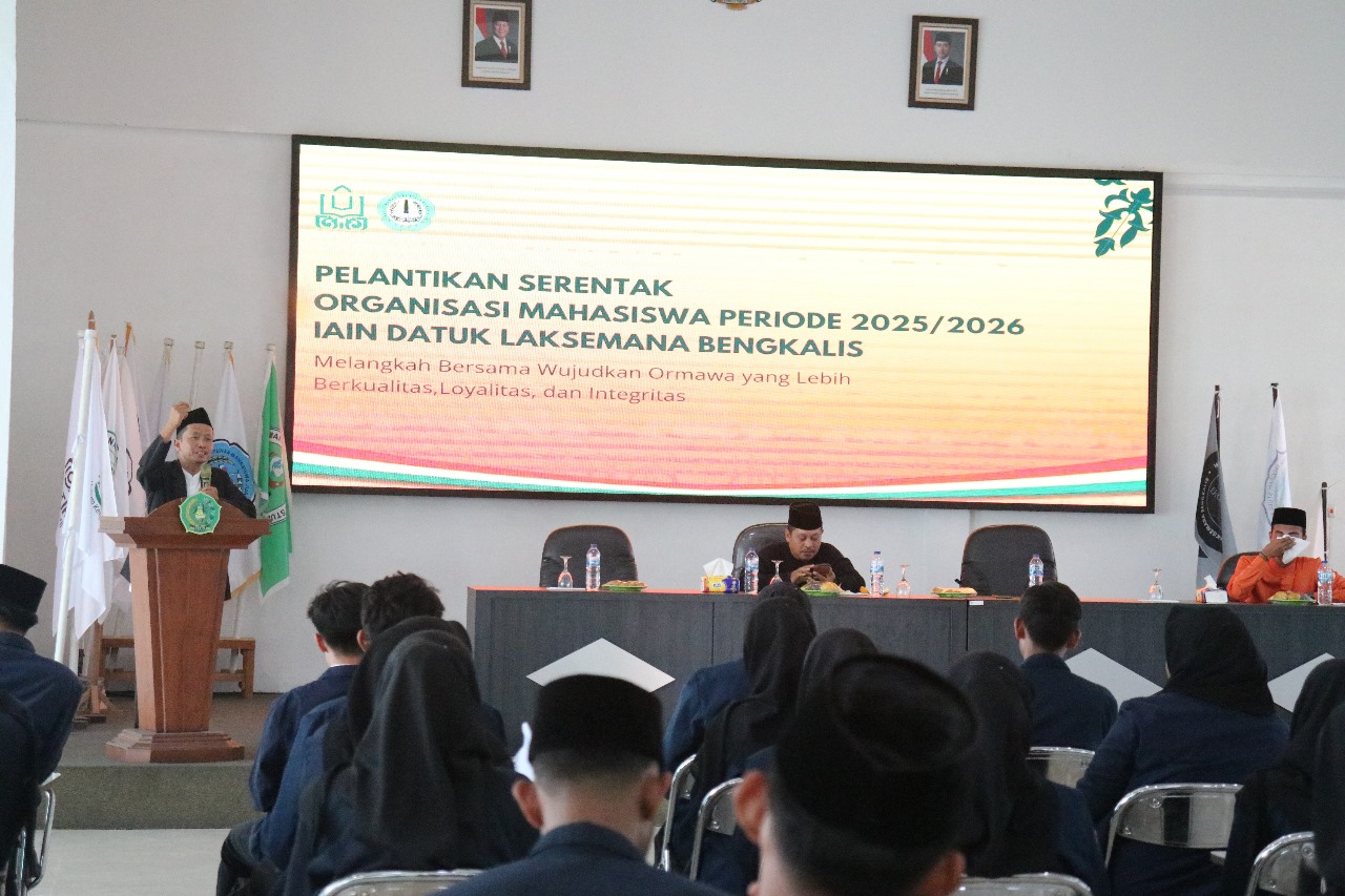 IAIN Datuk Laksemana Bengkalis (Humas) Bengkalis – IAIN Datuk Laksemana Bengkalis melaksanakan pelantikan 24 Organisasi Mahasiswa (ORMAWA) periode 2025/2026 yang diselenggarakan di Aula Gedung SBSN pada Rabu (24/09/2025).
