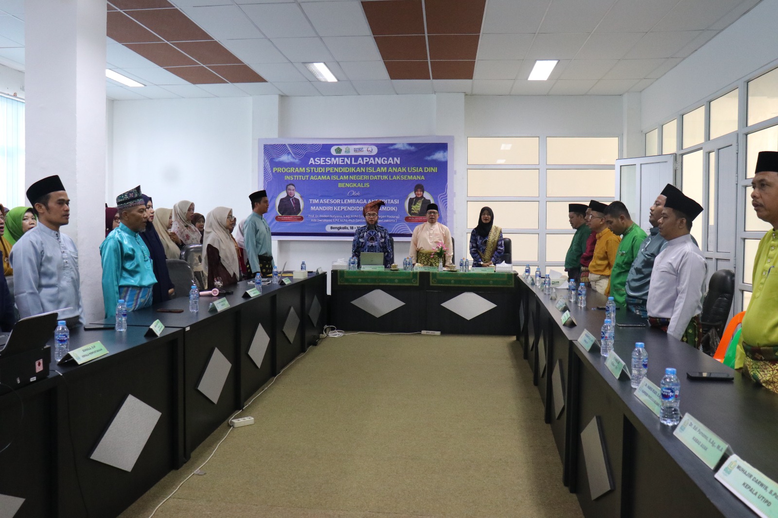 Kehadiran dua asesor disambut oleh Rektor dan unsur pimpinan IAIN Datuk Laksemana Bengkalis, Ketua Prodi, Dosen, Mahasiswa dan Alumni. Pembukaan berlangsung dengan hangat diiringi berbalas pantun sebagai cerminan budaya melayu.