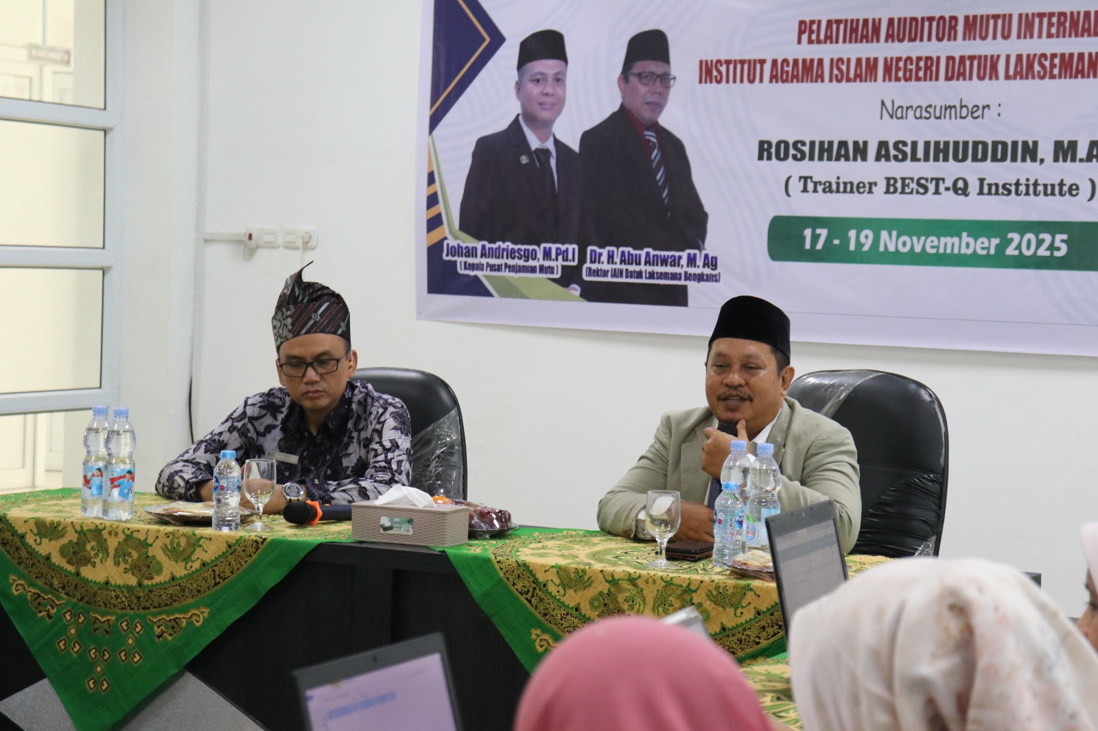IAIN Datuk Laksemana Bengkalis (humas) Bengkalis – Pusat Penjamin Mutu (P2M) IAIN Datuk Laksemana Bengkalis gelar Pelatihan Auditor Mutu Internal. Acara berlangsung di Ruang Rapat Gedung Pelayanan dan Pembelajaran Mahasiswa yang secara resmi dibuka oleh Wakil Ketua I, Dr. Jarir, M.Ag mewakili Rektor IAIN Datuk Laksemana Bengkalis pada Senin (17/11/2025).