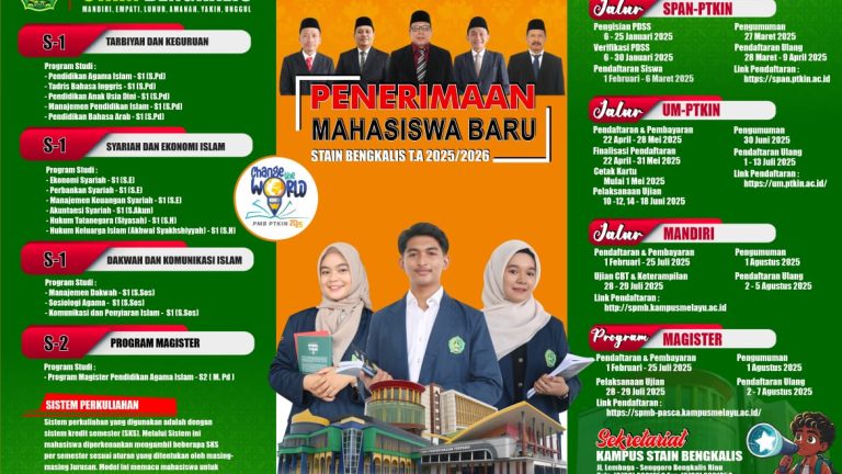 STAIN Bengkalis (humas) Bengkalis – Penerimaan mahasiswa baru Sekolah Tinggi Agama Islam Negeri (STAIN) Bengkalis Tahun Ajaran 2025/2026 telah dibuka…